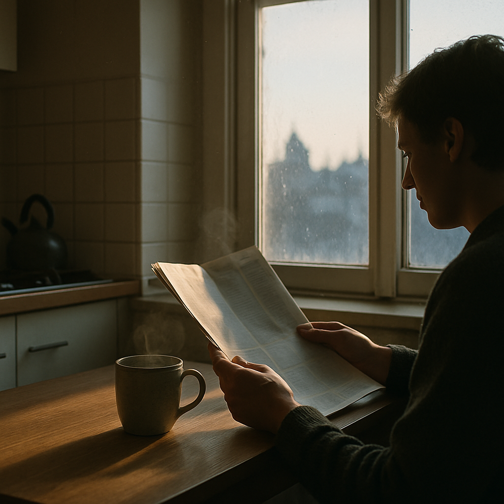Ik lees het nieuws in het ochtendlicht, terwijl de stad nog zijn schouders strekt. Zinnen schuiven als wolken over een…