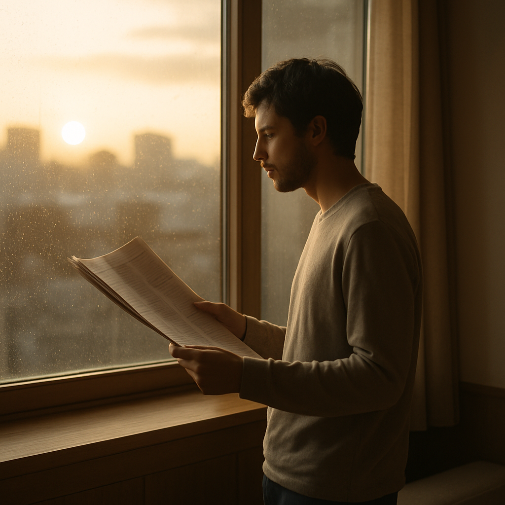 In de echo van het ochtendnieuws, dat geen sirenes droeg maar een fluistering van stilstand, vond ik een vreemde rust.…